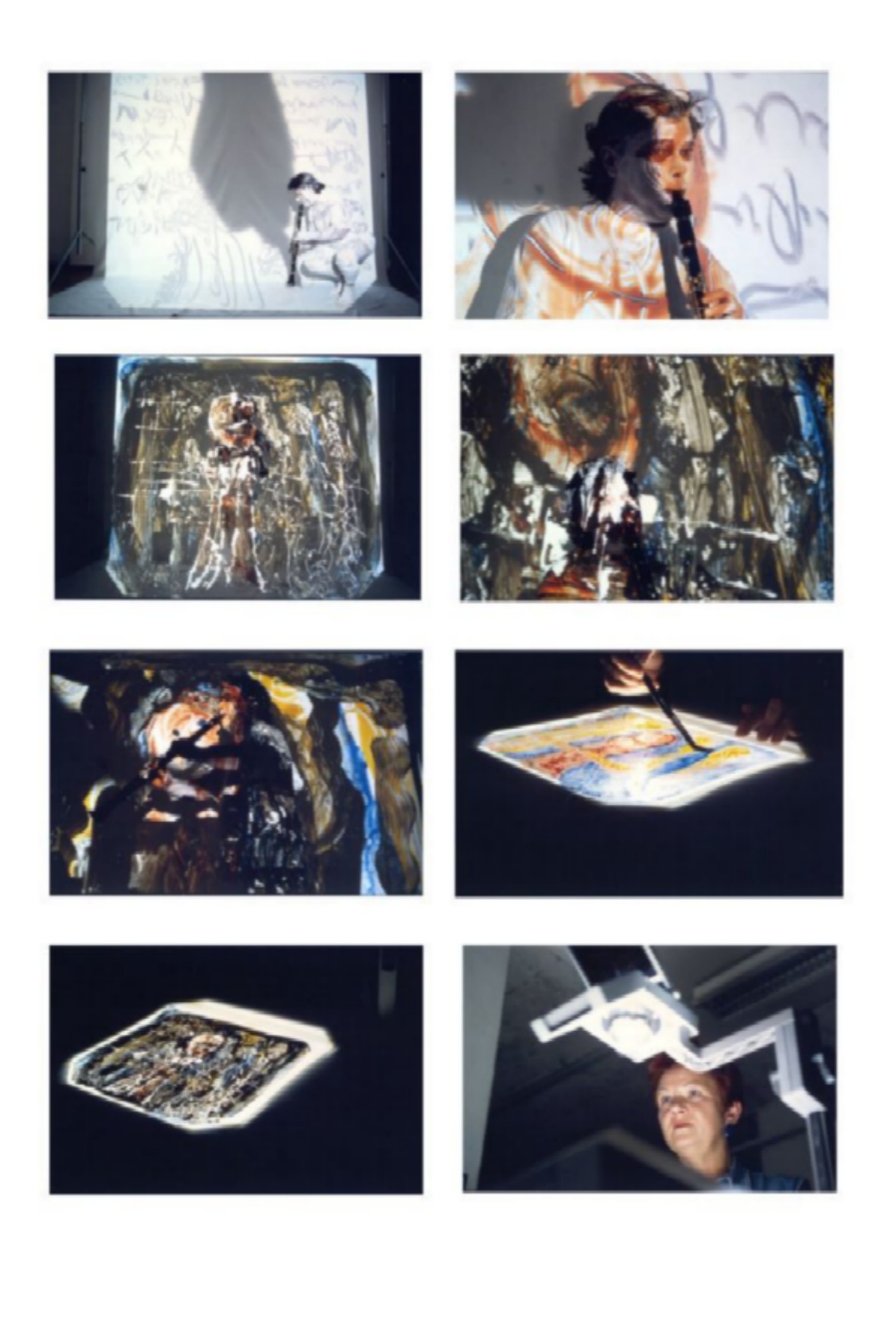 Gespräche ohne Worte stellt den Versuch dar, mittels der beiden Medien Musik und Malen zu kommunizieren. Diese Live-Inszenierung ist das Resultat aus der jahrelangen Zusammenarbeit der beiden Beteiligten im multimedialen Bereich. Durch ausdrucksvolle Darstellung mit Hilfe von Lichtprojektion, Solomusik und Bühnenbild, wird das Publikum in eine imaginäre, sinnliche Welt entführt. Die Verbindung von Bild und Musik wird erfahren durch die Arbeitsweise einerseits und durch die Gleichzeitigkeit des Entstehens andernseits. Das "Entstehen-lassen" nur mit einem minimalen Konzept, Unvoraussehbares zu beginnen, ist eng verknüpft mit Vertrauen, Toleranz, "Etwas wagen" und Handwerk. Für die Beteiligten ist es charakteristisch, dass ihr Schaffen mit der Auflösung von Grenzen verbunden ist. Begriffe wie figürlich, klassisch, irreal, abstrakt, improvisiert, realistisch, verlieren an Bedeutung, direkte Kommunikation rückt in den Mittelpunkt. Ein prägendes Element ist die Improvisation. Gemeinsam wird ein Zeitraum ausgeschritten, in dem Beide in ihrem Medium miteinander kommunizieren, eigenständig und zugleich einander beeinflussend. Es entstehen Bilder, Zeichnungen und Musik: ein Gespräch, wo verschiedene Wirklichkeiten über-, neben-, unter-, gegen- und miteinander verwoben werden. Unsere Form und Struktur ist die Zeit ! |
